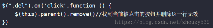 $(选择器).click(fn):当选中的选择器被点击时触发回调函数fn。只针对与页面已存在的选择器。而.J_del这个删除按钮是通过append加到页面上的 。所以.click()无效